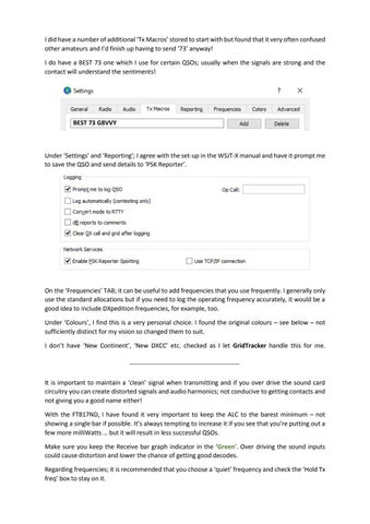I did have a number of additional ‘Tx Macros’ stored to start with but found that it very often confused other amateurs and I’d finish up having to send ‘73’ anyway! I do have a BEST 73 one which I use for certain QSOs; usually when the signals are strong and the contact will understand the sentiments!