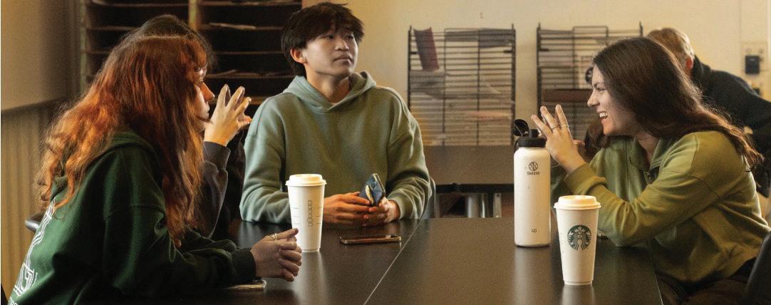 SENIORS MOLLY RYAN, Erik Huang and Ella Buske discuss their segment ideas with their group. “I’d love to collaborate more with The Bark and with photography to find ways that our kids can cross-pollinate and get their [work] out to a wider audience,” Berkowitz said.