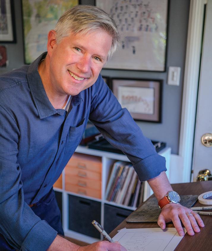 TOM FISHBURNE DEMONSTRATES how he draws a new cartoon.