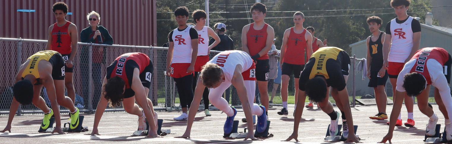 FOCUSED, JUNIOR MARCO Cleary and senior Nate Beltran line up for the 100-meter sprint alongside Novato and San Rafael runners.
