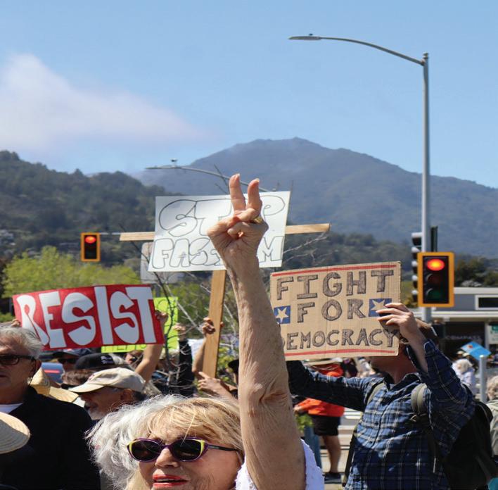 “I felt that we needed to do something locally here in Corte Madera to raise awareness of all the issues that are going on,” Bock said. “Everybody that’s here has a couple of issues that they are the most passionate about, but collectively, we are deeply troubled by the direction our country is moving in. The Trump administration does not care about the Constitution, [is] happy to break the law and we just feel that this is an existential threat to democracy.”