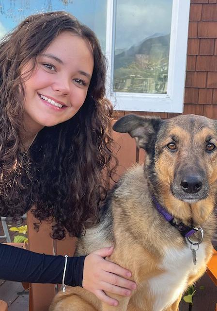 LIPINSKA BONDS WITH her host family’s dog, embracing her new pet.