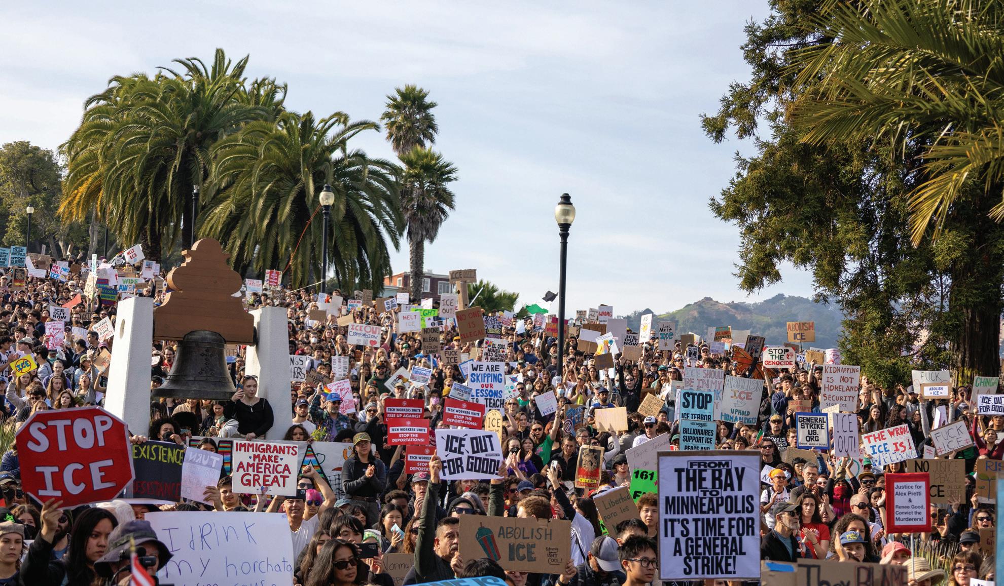 On Friday, Jan. 30, tens of thousands of Bay Area locals gathered at Dolores Park in the Mission District of San Francisco to peacefully protest U.S. Immigration and Customs Enforcement (ICE). The weekend was labeled the “ICE out of everywhere national day of actions,” with San Francisco holding one of the largest gatherings in the nation. At the scene, the park was filled with students and adults who didn’t attend school or work to show solidarity. The protesters brought handmade signs with creative slogans and powerful messages, and chanted together in unison.
