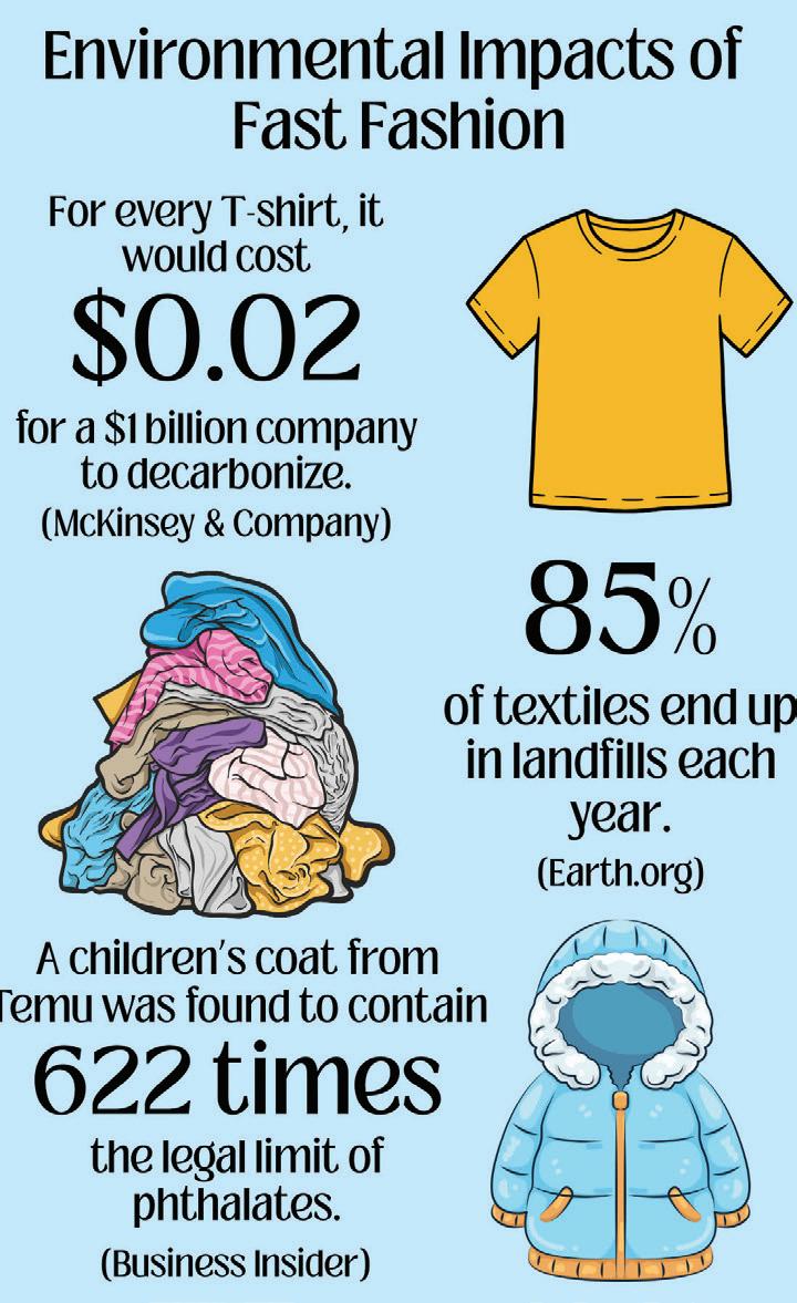 “The fast fashion industry is constantly selling things to us on social media with advertisements and influencers saying, ‘Use my $500 Shein gift card,’ and showing what all these clothes look like on perfect people,” Bankovitch said. “Overconsumption is making teenagers feel like they need to have more, or that they’re not enough, if they don’t have that certain aspect of clothing.”