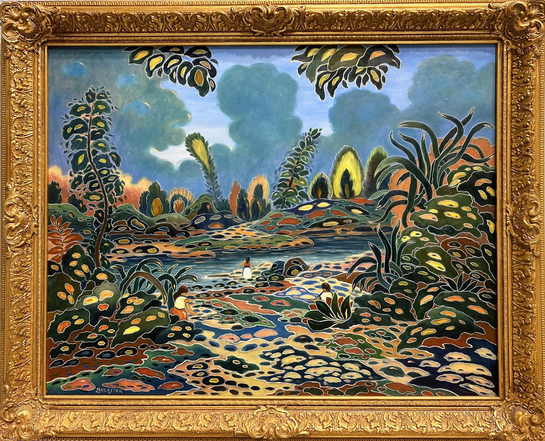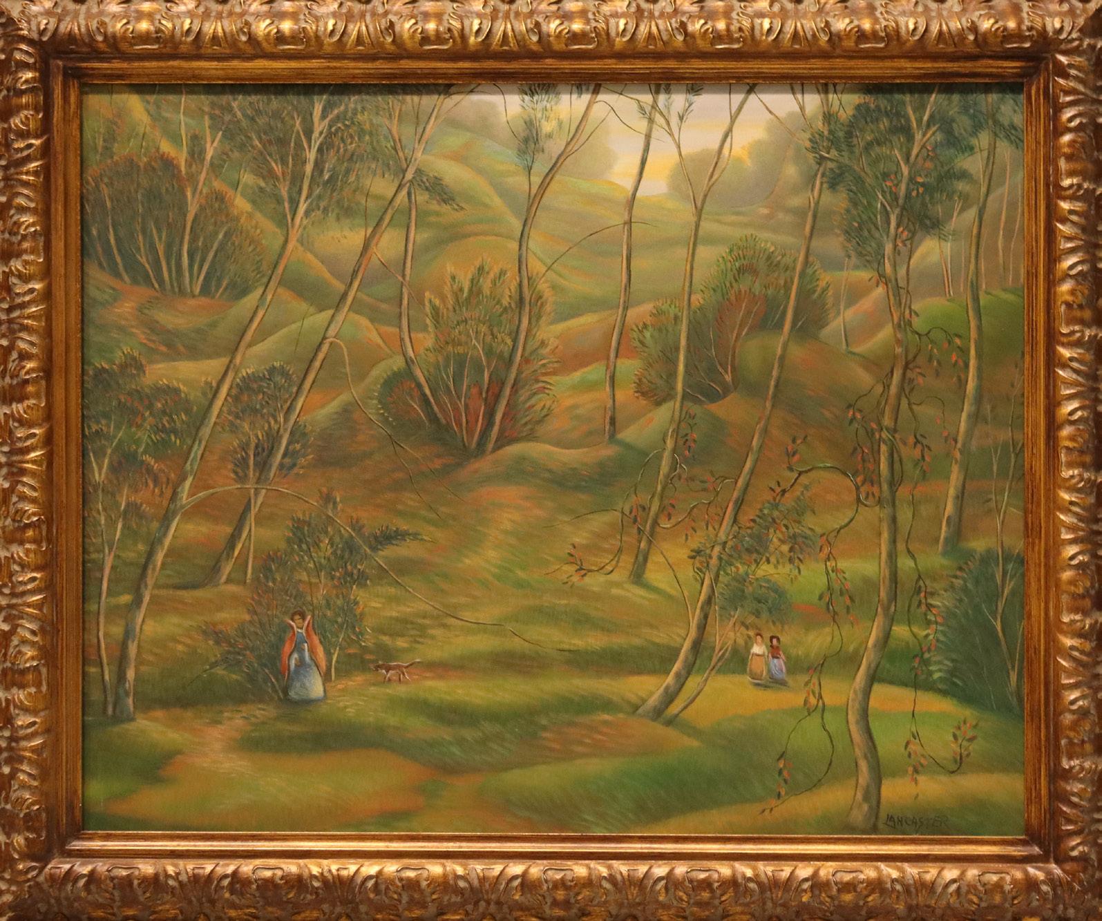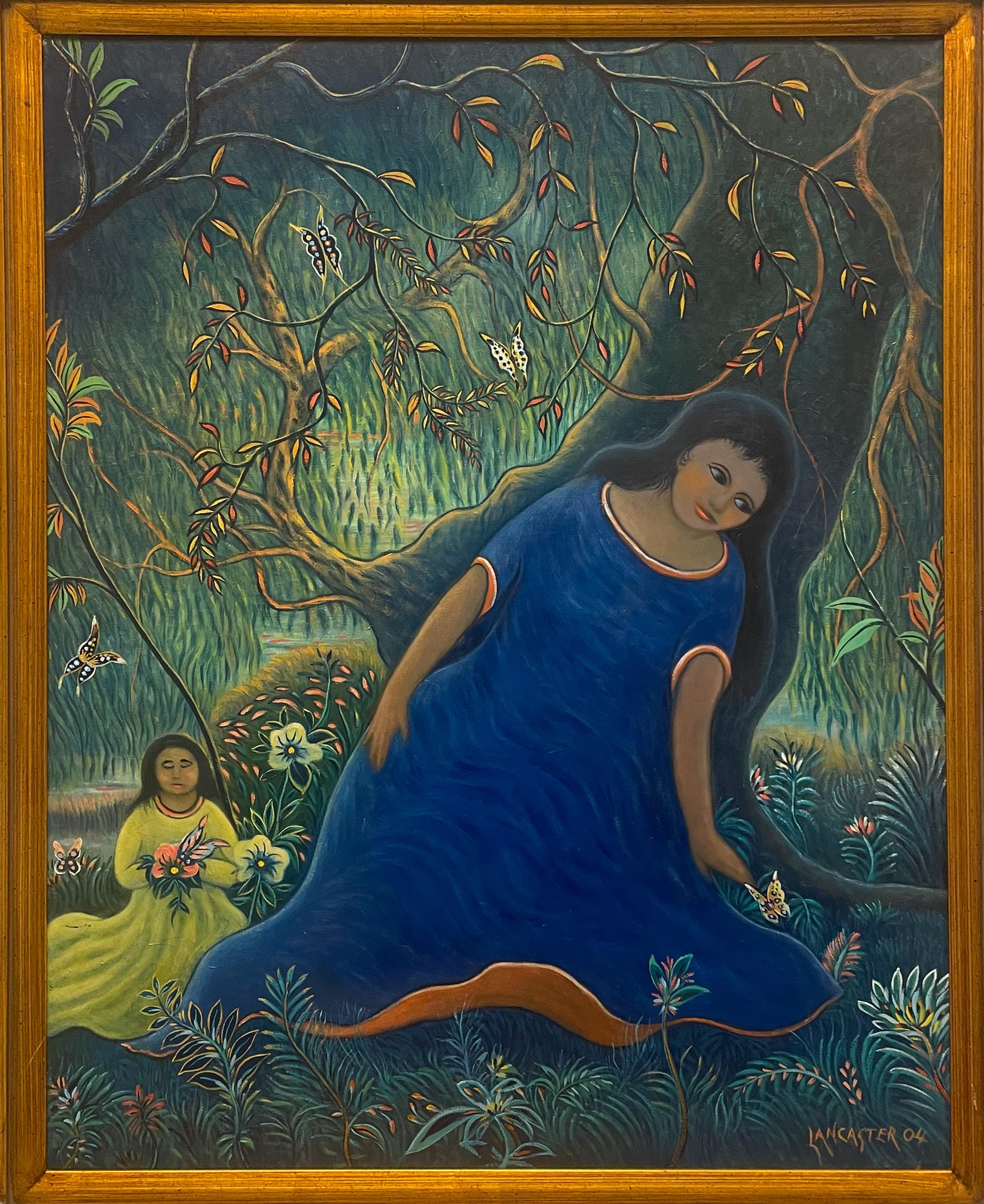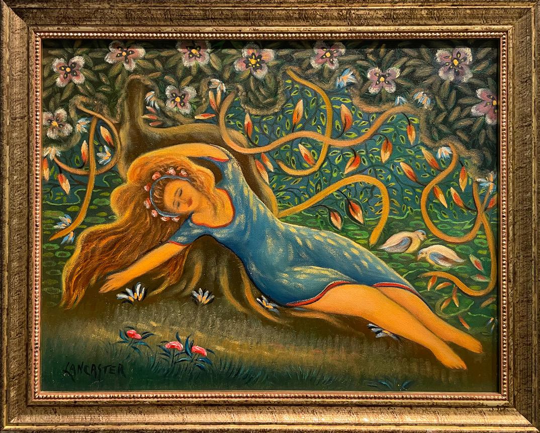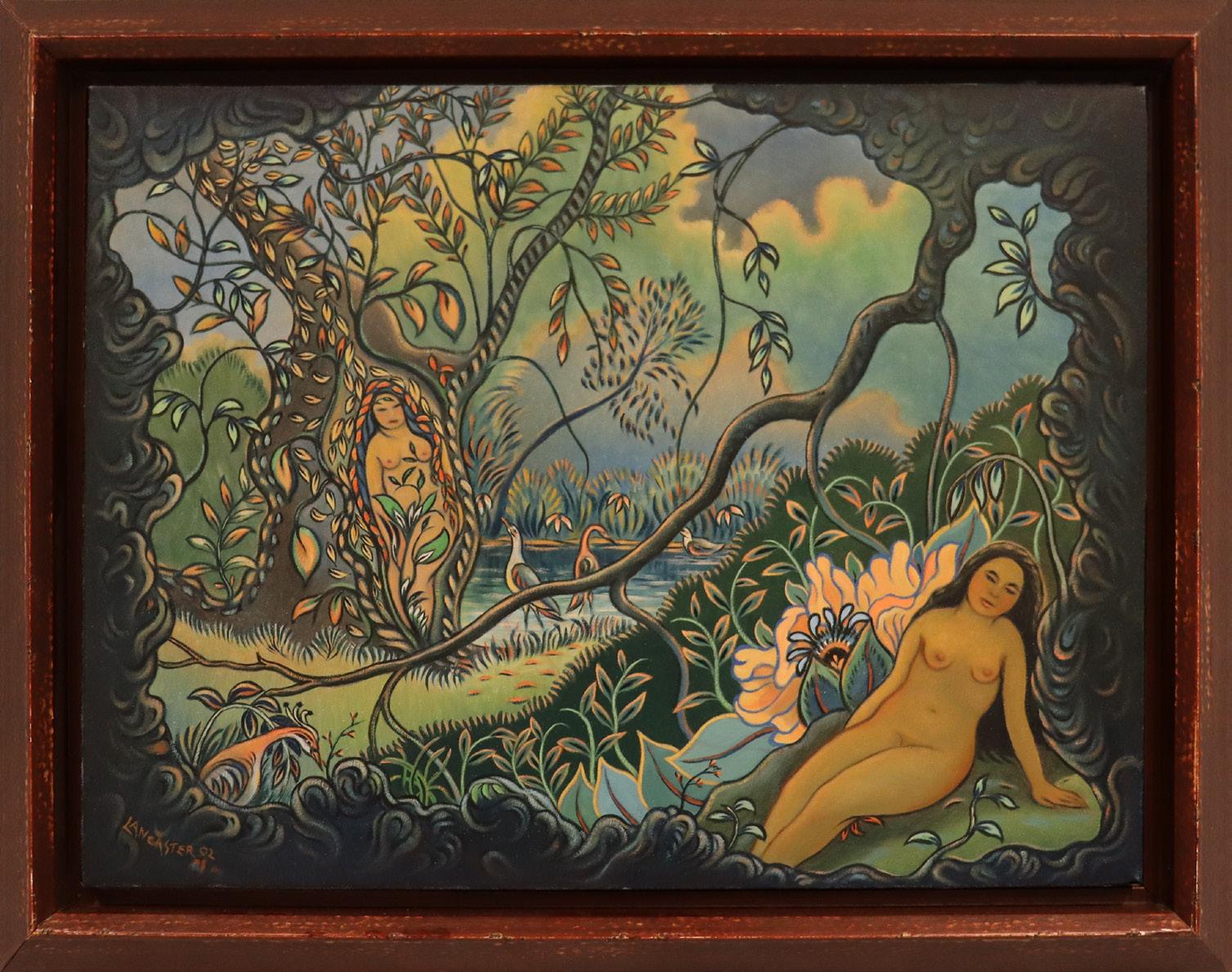 Paul was a simple man, quiet and modest. He was part Cherokee, which influenced his personality and is clearly reflected in his work. One could easily see his works as “visions” of a beautiful life deeply enriched by the wonders of nature. He belonged to the outdoors and his works always belonged to nature and the spiritual. The subjects of his work are the forests, woods and streams. Figures are in his works but they may seem unimportant, helpful for proportion but not always essential to the presentation. When he did include figures they were usually feminine, and always beautiful. Working strictly from imagination, he often animated his trees and rocks suggesting animal or human forms. His visions were peaceful and quiet, almost fairy tale, pretty and idealistic. Lancaster was a true self-taught artist in every respect— his knowledge and technique are natural gifts rather than academic. His skills were honed by more than fifty years of artistry. While his style ranged from the simple to the extraordinarily complex, it always met the viewer with innocence and honesty. In this sense, he was great rather than good. “Paul Lancaster: Immersed in Nature” was published in 2009 and described his life and his art. Lancaster passed away on June 18, 2019.