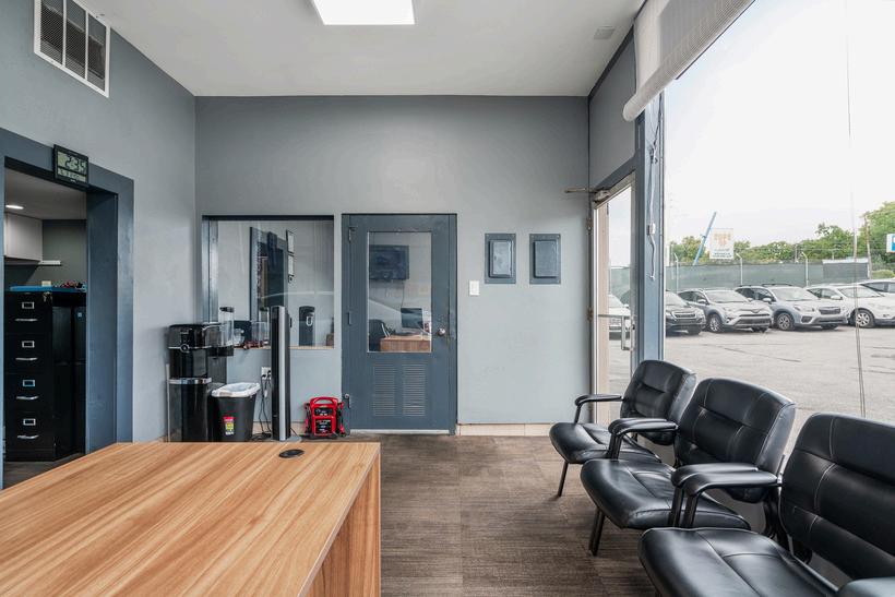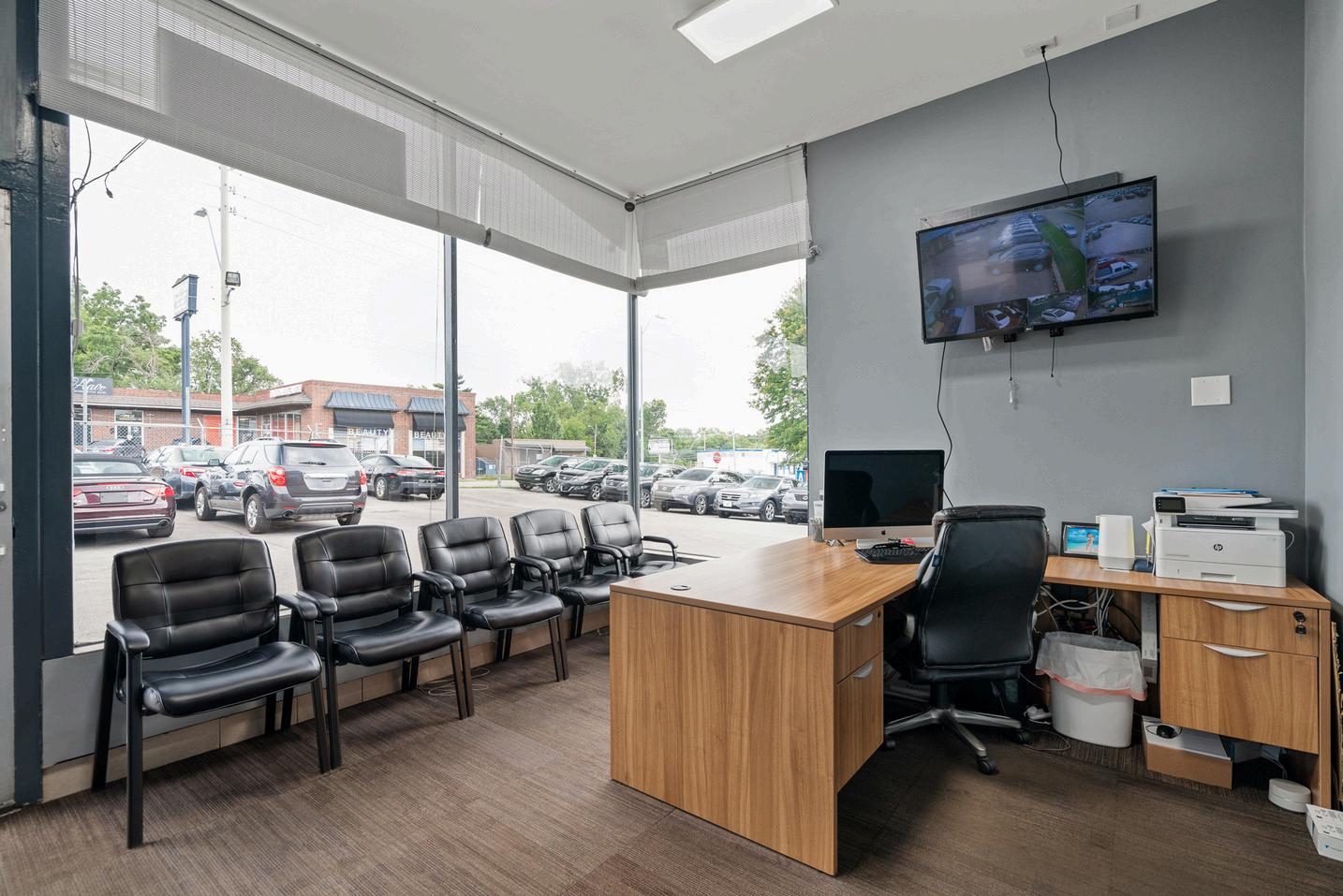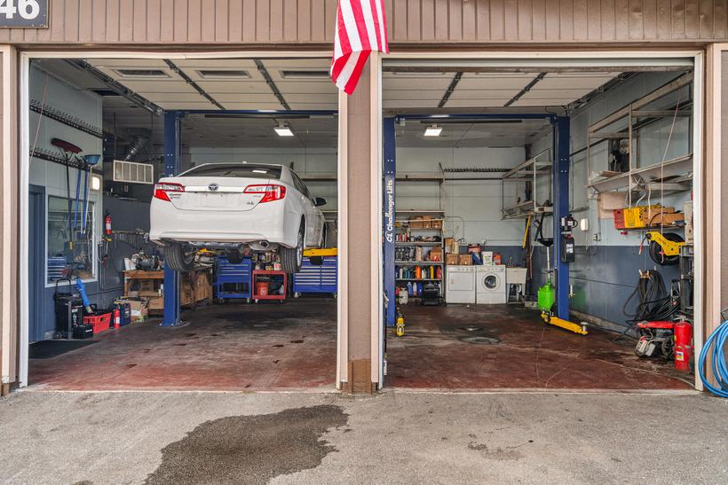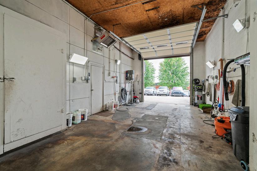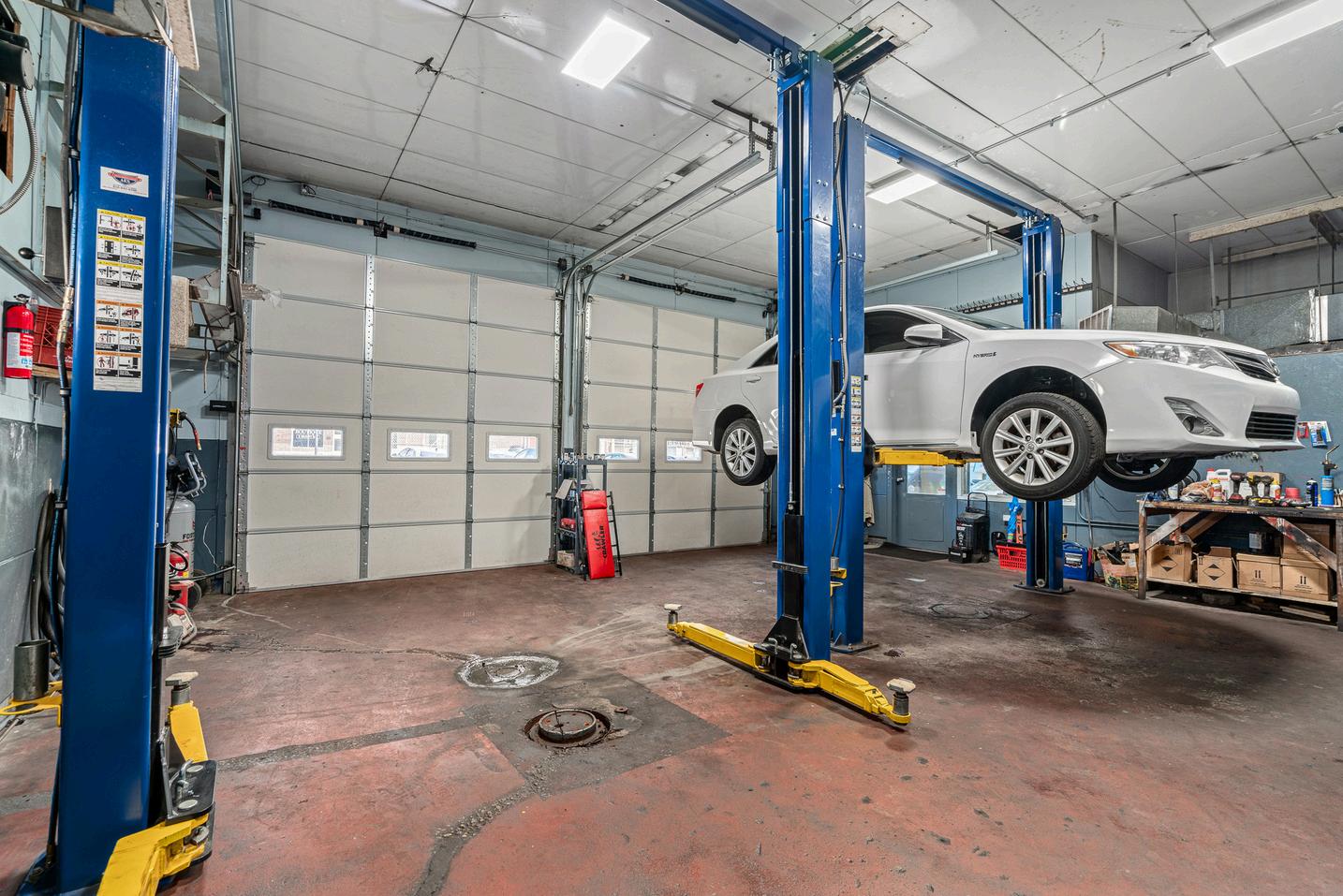 Sales office, staff lounge, 2 bathrooms, 2 mechanic bays with new lifts, 1 auto detailing bay, extra storage room