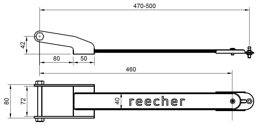 Length 460 mm from rudder stock to autopilot pin. Adjustable +/- 30 mm.