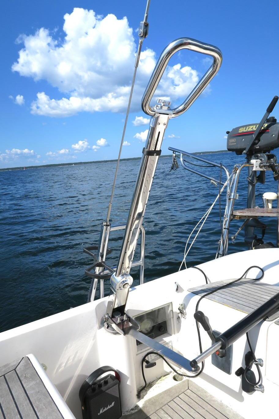 Boat size 7.5 – 11 metres (25 – 36 ft) sailboat with tiller and autopilot.