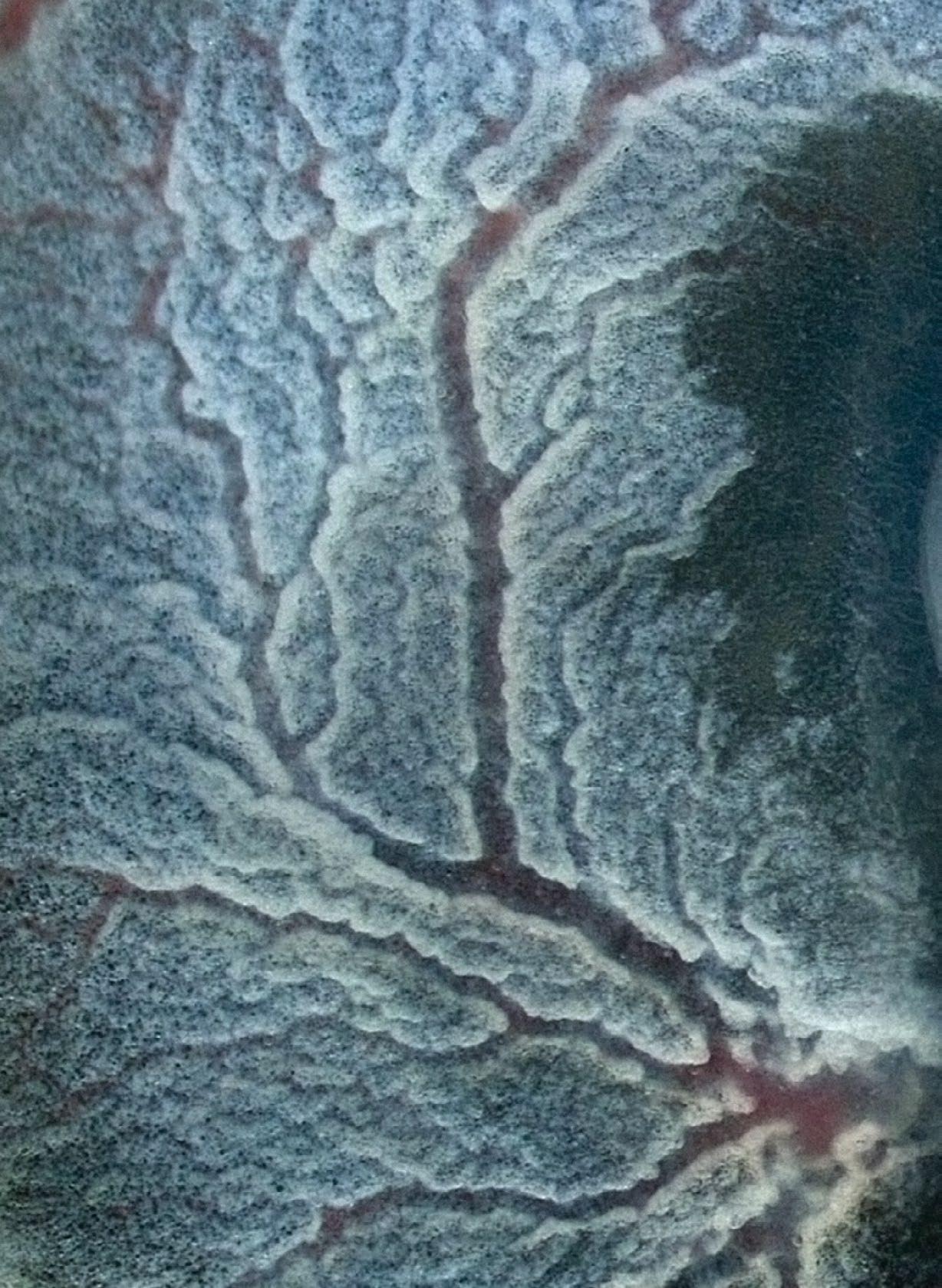 The image was taken by mounting the embryo on the stage of a dissecting microscope, then holding a smartphone over one of the eyepieces. No longer concealed by its shell, the embryo’s heart visibly beats, pumping blood, with its head and brain oriented toward the top, and the heart tucked under its head. The membrane and blood vessels that circle the embryo provide nutrients and oxygen to support development and remove metabolic waste. In my Developmental Biology (biology 351L) lab, we study the genetic, chemical, and physical forces that influence embryo formation. This one is surprisingly resilient: as long as it is kept hydrated, covered with egg albumen, and supplied with a calcium source, it can carry on developing. The heart will continue to beat.