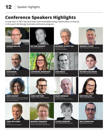 Conference Speakers Highlights A snap shot of 180+ key local clean and renewable energy stakeholders to feature in this year’s All-Energy Australia conference program.