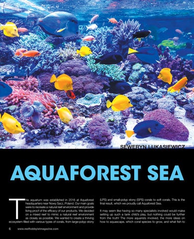 his aquarium was established in 2016 at Aquaforest headquarters near Nowy Sacz, Poland. Our main goals were to recreate a natural reef environment and provide living proof of the efficacy of our products. We decided on a mixed reef to mimic a natural reef environment as closely as possible. We wanted to create a thriving ecosystem filled with various types of corals, from large-polyp stony