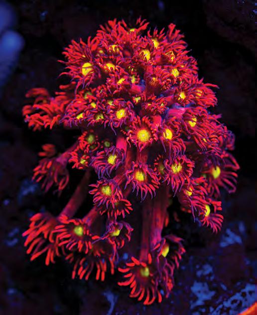 If you decide to add one of these ultra-colored Goniopora to your reef, pay attention to the coral’s environmental and nutritional needs, and place it with compatible corals. By providing captivepropagated Goniopora with the proper conditions, these corals will flourish and reward you with remarkable colors and beauty. R