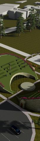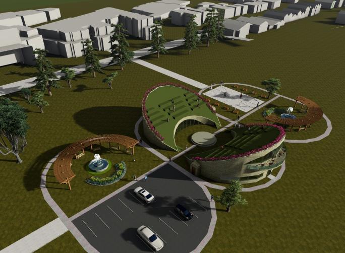 This library design draws inspiration from the theme of unity and groundedness, symbolized through its organic form and open spaces. The structure’s curved green roofs merge with the surrounding landscape, embodying a connection to nature while providing usable outdoor spaces. The central courtyard fosters a sense of community, encouraging interaction and gathering. Its layout features terraced seating and integrated pathways, guiding visitors through different experiences within the library. The design emphasizes inclusivity, creating an inviting environment for learning, reflection, and social engagement.