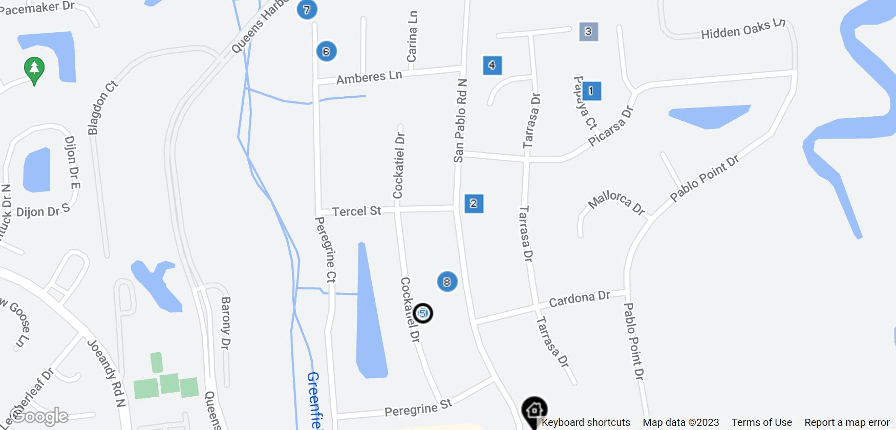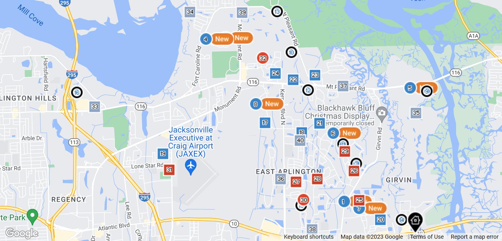 LEGEND: SubjectProperty Pending ForSaleorForLease Distressed RecentSale OffMarket Comps Map 115SanPabloRdN,Jacksonville,FL32225 Copyright2023RealtorsPropertyResource®LLCAllRightsReserved InformationisnotguaranteedEqualHousingOpportunity 2/1/2023 10of23