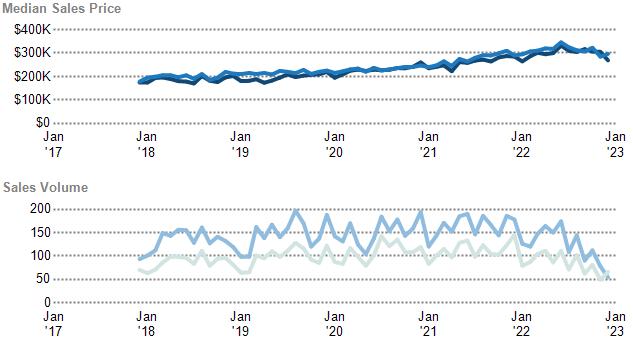 Thischartcomparesthelistingsand publicrecordssalespricetrendandsales volumeforhomesinanarea
