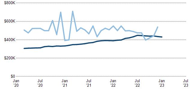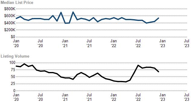 Thischartcomparesthelistingsand publicrecordssalespricetrendandsales volumeforhomesinanarea