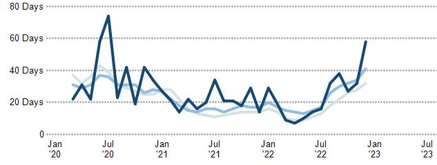 Thischartshowshowlonghomesare listedinRPRbeforetheirstatusis convertedtosold