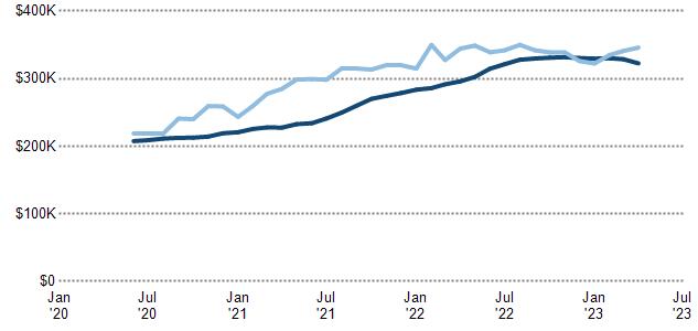 Thischartcomparesthelistingsand publicrecordssalespricetrendand salesvolumeforhomesinanarea.