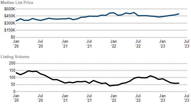 Thischartcomparesthelistingsand publicrecordssalespricetrendand salesvolumeforhomesinanarea.