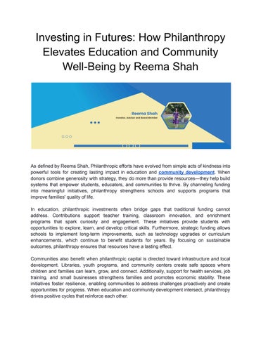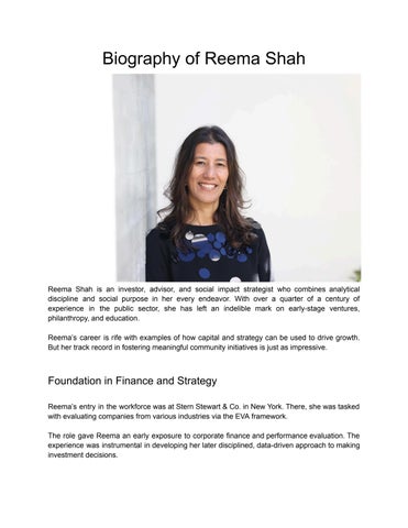 Reema Shah’s career has unfolded through a steady combination of financial expertise, careful analysis, and a deep interest in supporting work that benefits both organizations and communities. Over more than twenty-five years, she has contributed to early-stage ventures, investment management, education, and philanthropy, consistently grounding her decisions in discipline and purpose. Her introduction to the finance world began at Stern Stewart & Co. in New York, where she evaluated companies across a wide range of industries using the EVA framework. This early experience offered her a detailed view of corporate performance and helped her develop the structured approach that would become central to her investment philosophy. She strengthened this foundation through subsequent roles at Morgan Stanley and Fayez Sarofim & Co., expanding her skills in company valuation, sector analysis, and direct engagement with executive teams. After receiving her MBA from the Kellogg School of Management in 2000, Reema joined Donaldson, Lufkin & Jenrette as an equity research analyst. In this role, she conducted in-depth research and provided investment recommendations to institutional clients. Her work further developed her understanding of public markets and reinforced her reliance on careful evaluation before making decisions. Reema later advanced into a significant leadership position at JWS Technology Funds as managing director and partner. She began as an analyst and eventually co-managed a multi-billion-dollar technology-focused mutual fund. She also invested in software and consumer companies for the firm’s hedge fund, contributing to its growth from $10 million to more than $1 billion. Her work at JWS highlighted her ability to navigate market volatility and identify opportunities in competitive industries. Even as she succeeded in the financial world, she increasingly sought ways to blend strategy with social purpose.