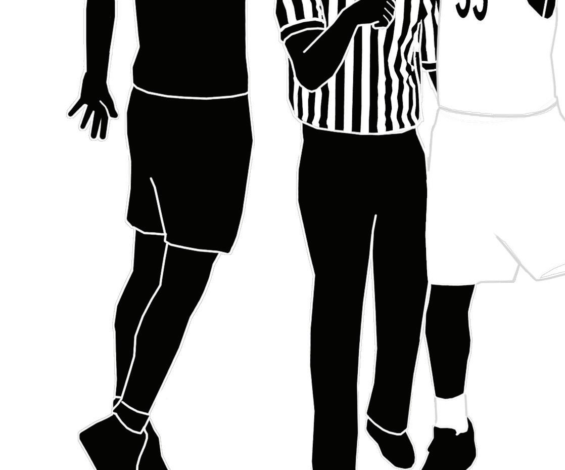 continued from p.27 I obviously need to know if it’s a technical foul because that’s recorded differently, and if it’s an offensive foul, I will know that no free throws will be awarded. But otherwise, my focus is only on the color and number that you’re giving me. • Tell me what you want. While we’re having our pregame conference (NFHS Officials Manual, 1.7.1E) and you’re signing the book, feel free to list your expectations or even to test me a little so that you can be confident that I know what I’m doing. If you do something a little differently, I am happy to comply. When you come over at halftime to confirm the score and watch me change the arrow, keep me updated — I’m open to constructive criticism, but it’s easier when I have a few minutes to think about the adjustments I need to make before play resumes. • Hold your signals. Three-point signals are the only ones I have to see and record while the clock is running. Hold them for just a millisecond longer than you think necessary to be absolutely sure I’m recording the correct points and can confirm the visiting scorer saw the same thing. Additionally, many held ball calls are very quick — it’s helpful if you keep your thumbs up while you look for my arrow so that we can both acknowledge that I’m going to change the possession as soon as the ball is back in play.