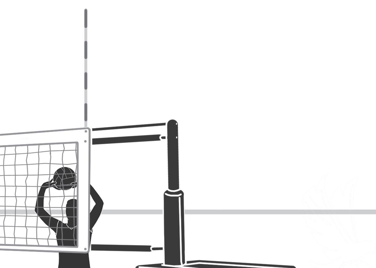 Play: A1 goes back to perform a jump serve. As A1 tosses the ball, it hits a support for a hanging basketball goal. The first referee whistles, awards a point to team B and signals out of bounds. Ruling: Correct in all codes. The server has a responsibility to assume a position that is not located under an obstruction. The server is not entitled to a re-serve and the correct mechanic is to signal out of bounds (NFHS 8-1-6; NCAA 13.1.3.2; USAV 12.6.1.2)