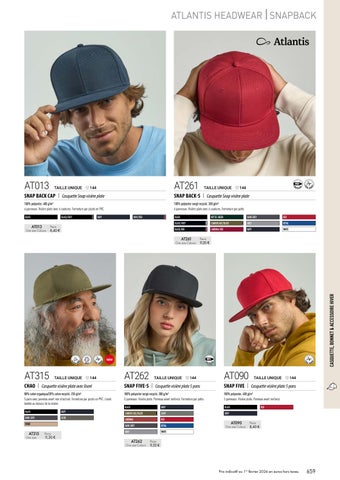 100% polyester. 400 g/m2 5 panneaux. Visière plate. Panneau avant renforcé.
