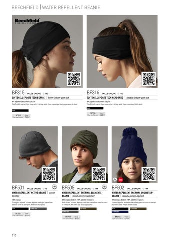 100% acrylique. Doublure : 100% polyester micropolaire. Maille côtelée. Traitement déperlant durable pour une meilleure protection contre les intempéries. Avec revers pour un marquage optimal.