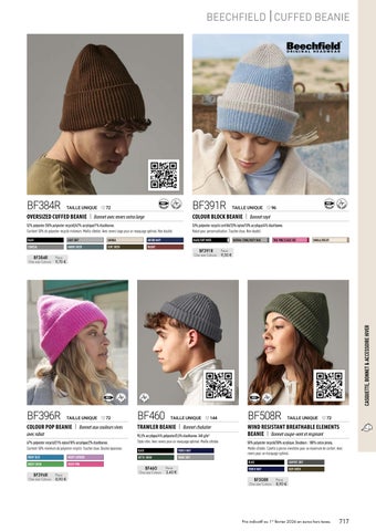 95,5% acrylique/4% polyester/0,5% élasthanne. 340 g/m2 Style rétro. Avec revers pour un marquage optimal. Maille côtelée.