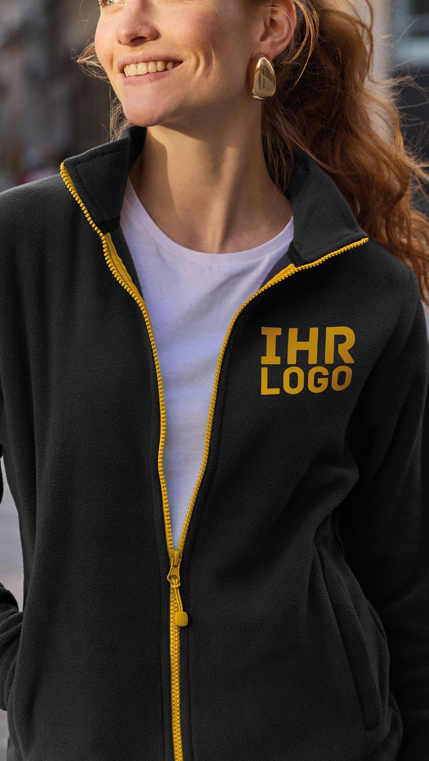 Kombinieren Sie Ihre Poloshirts, Softshelljacken, Daunenjacken, Fleecejacken, Mützen und Taschen. Verfügbar in 3 Grundfarben (Schwarz, Marineblau, Weiß) + 8 Kontrastfarben.