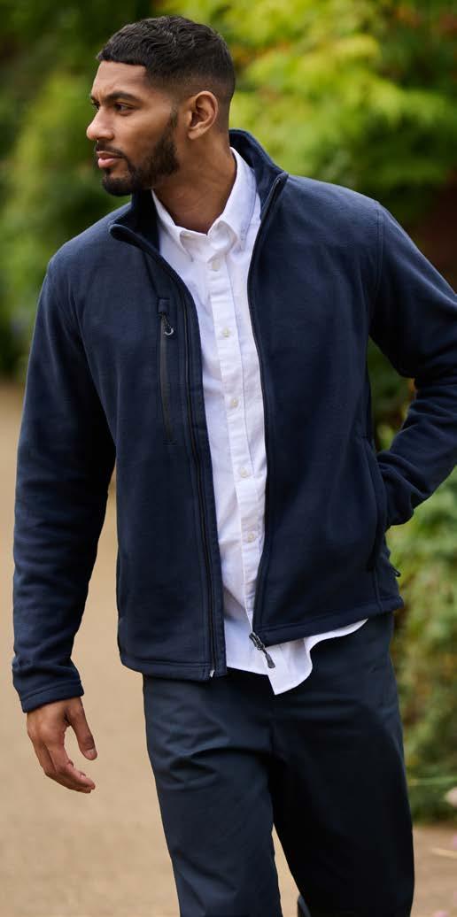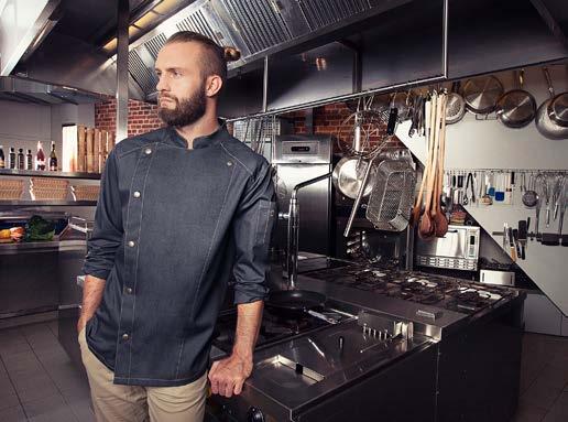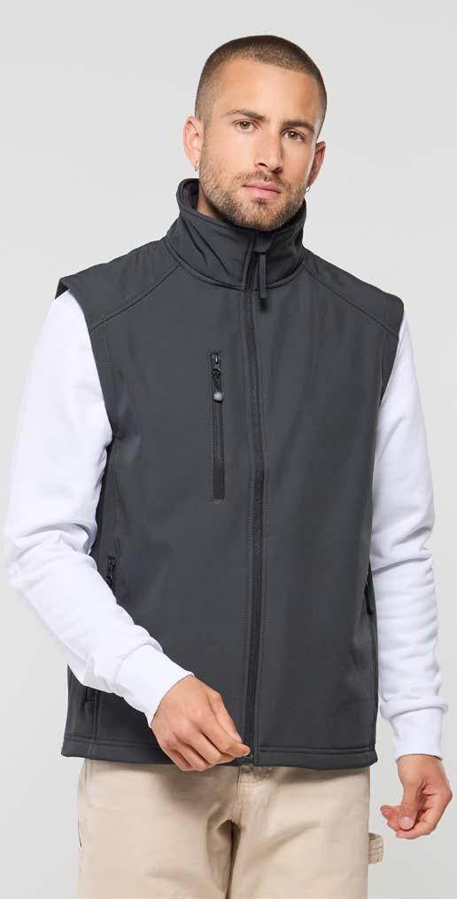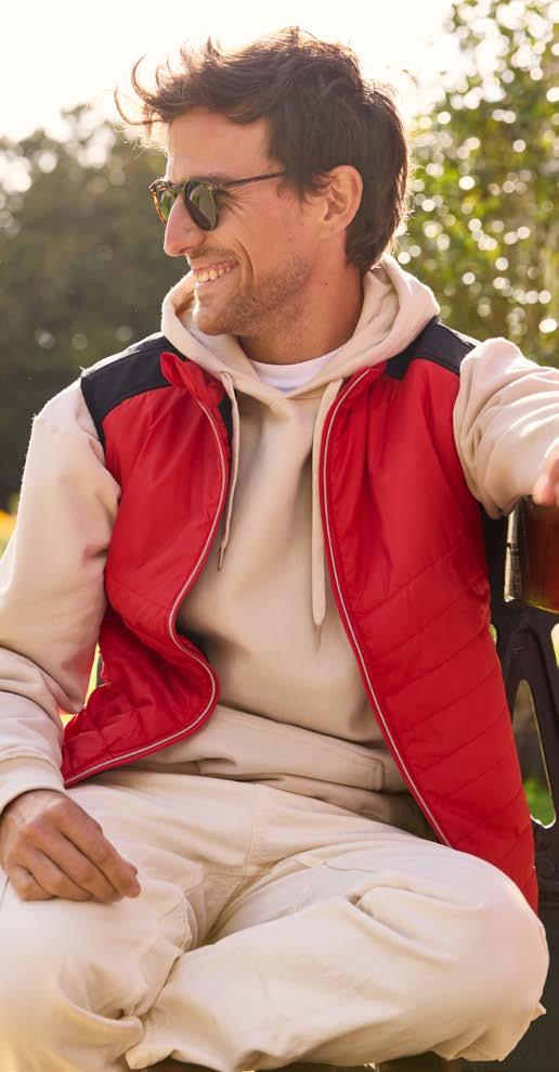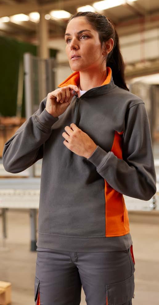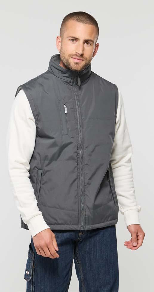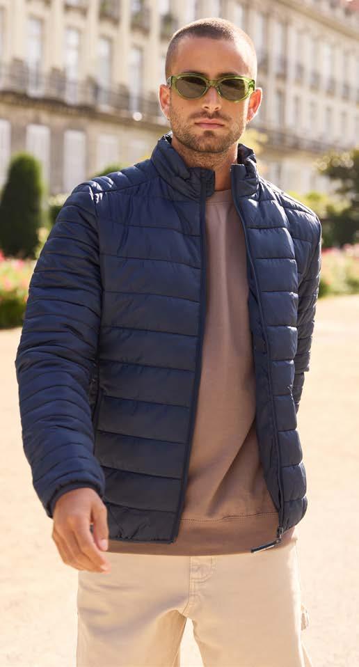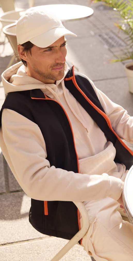 70% algodón Ringspun/30% poliéster. 330 gr/m2. Mangas contrastadas. Cuello, muñecas y cintura con tirilla elástica contrastada. Cierre por botones a presión. Interior perchado.