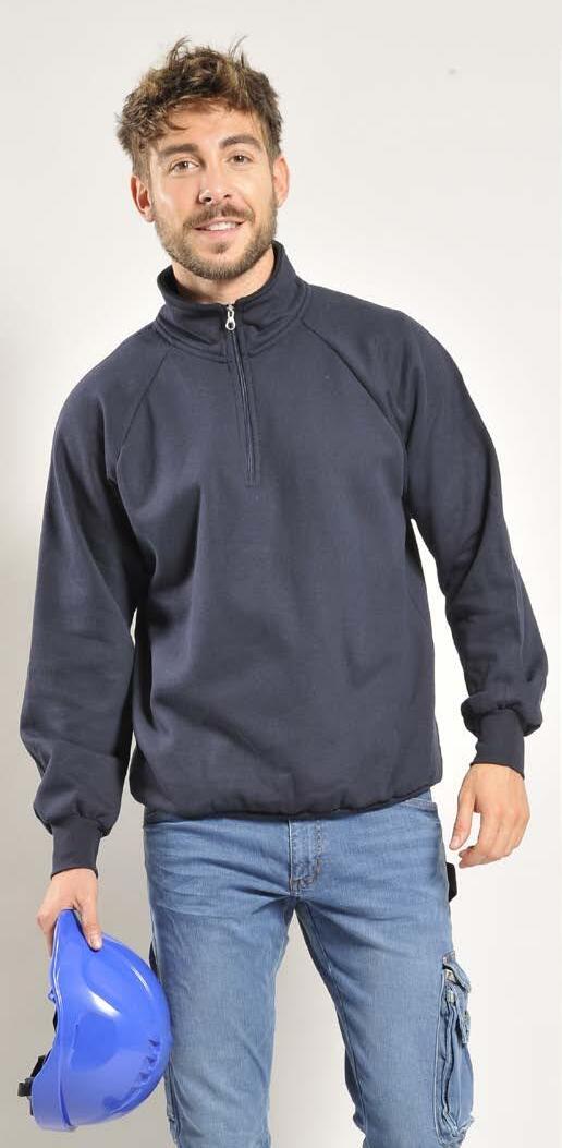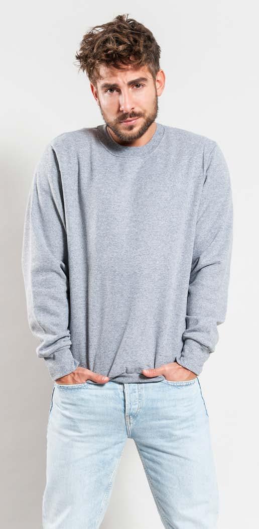 80% algodón Ringspun/20% poliéster. 280 gr/m2. Cuello redondo. Mangas rectas. Banda de limpieza en el cuello. Interior perchado.