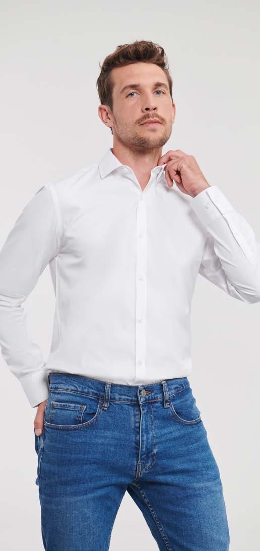 Doble pespunte en el cuello, los hombros y la cintura. Cuello con ribete de elastano.