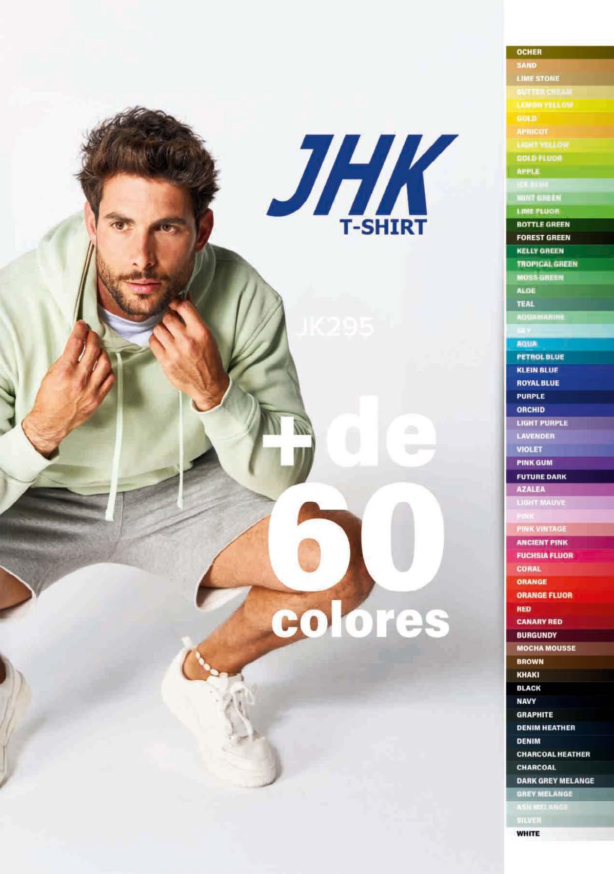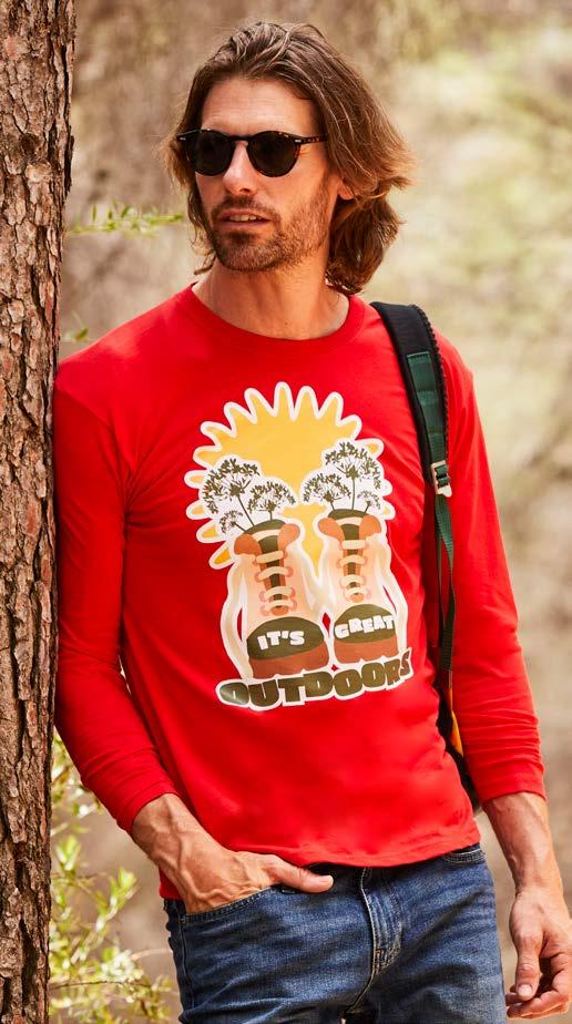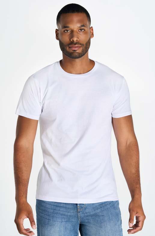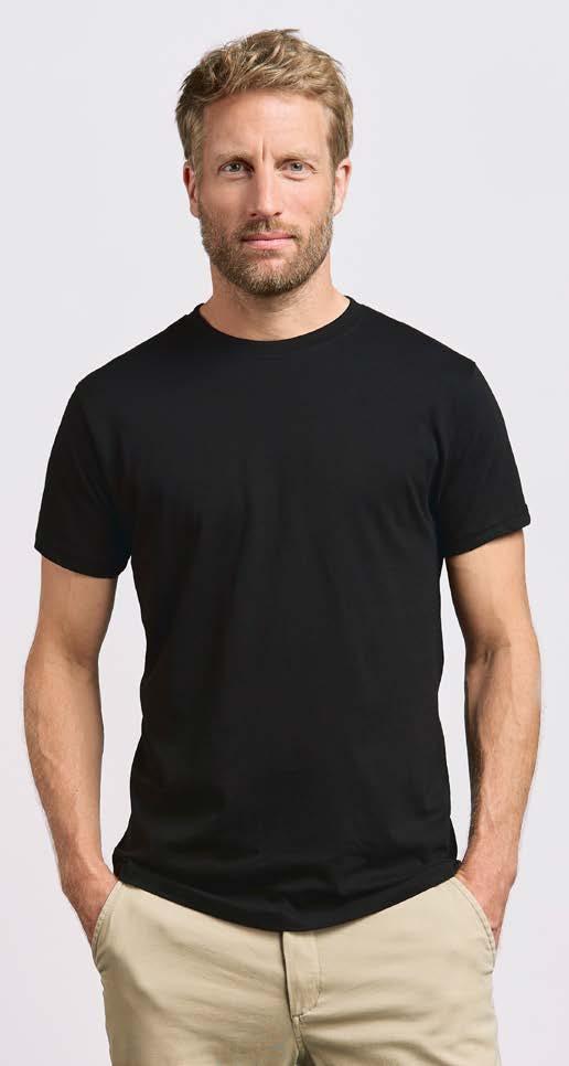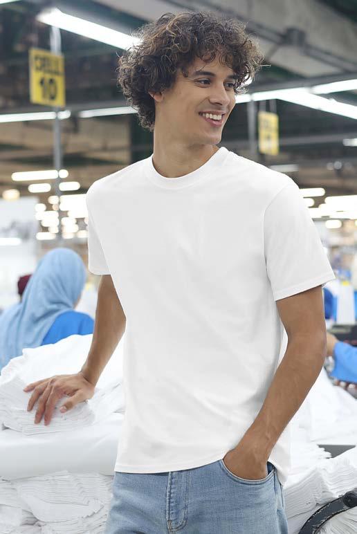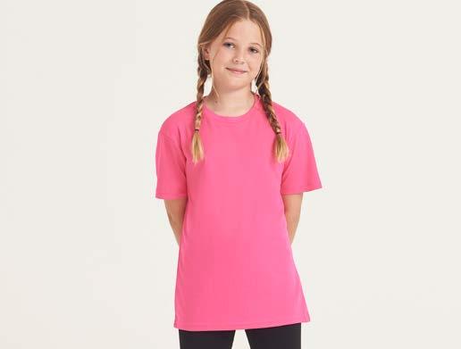100% algodón Jersey. 165 gr/m2. Cuello redondo con ribete de algodón/Lycra® Tejido y calibre más finos para una impresión de alta resolución.
