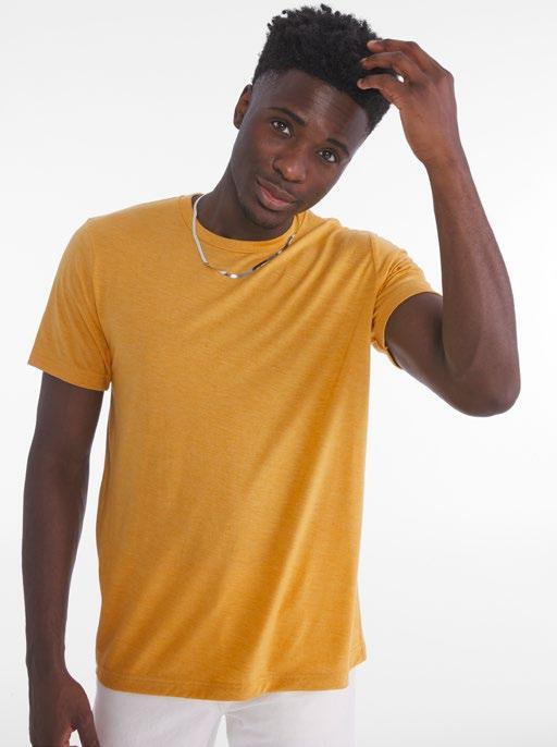 100% algodón Jersey. 165 gr/m2. Cuello redondo en ribete de algodón/Lycra® Banda de refuerzo del mismo tejido en el reverso del cuello. Tejido y calibre más finos para una impresión de alta resolución.