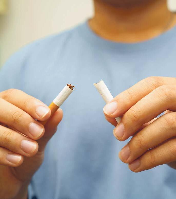 Dass Sport sogar jünger macht, und zwar motorisch gesehen um ganze zehn Jahre, zeigt die Langzeit S tudie „Gesundheit zum Mitmachen“ des Karlsruher Instituts für Technologie (KIT). Über einen Zeitraum von 25 Jahren wurden die Studienteilnehmenden in regelmäßigen Abständen auf ihre Fitness, den allgemeinen Gesundheitszustand sowie ihr seelisches Wohlbefinden gecheckt. Weitere Resultate: Mit fortschreitendem Alter nähmen zwar die Zipperlein zu, allerdings seien die Gesundheitssportler davon deutlich seltener betroffen als die Bewegungsmuffel. Eine Grundregel von Altersforschenden lautet daher: Ab jetzt muss man mehr machen als früher. Dabei ist es nie zu spät, auf einen gesunden Lebensstil umzustellen. Dazu gehört auch der Risikofaktor Rauchen: Denn nach dem letzten Zug am Glimmstängel wird der Körper schon nach wenigen Stunden besser mit Sauerstoff versorgt. Langfristig sinkt nach einem Rauchstopp sogar das Risiko für Herz K reislauf Erkrankungen, COPD und Lungenkrebs.