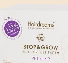 Während MicroLines sofort optisch für mehr Haarfülle sorgt, setzt Hairdreams Stop&Grow an der Wurzel des Problems an – im wahrsten Sinne des Wortes. Das Anti-Haarausfall-System besteht aus einer hochwirksamen P egeserie, die auf wissenschaftlich erforschten Wirkstoffkomplexen basiert. Das Herzstück ist der patentierte PHT-Wirkstoffkomplex, der die Haarwurzeln aktiviert, die Kopfhaut stärkt und das natürliche Haarwachstum fördert.