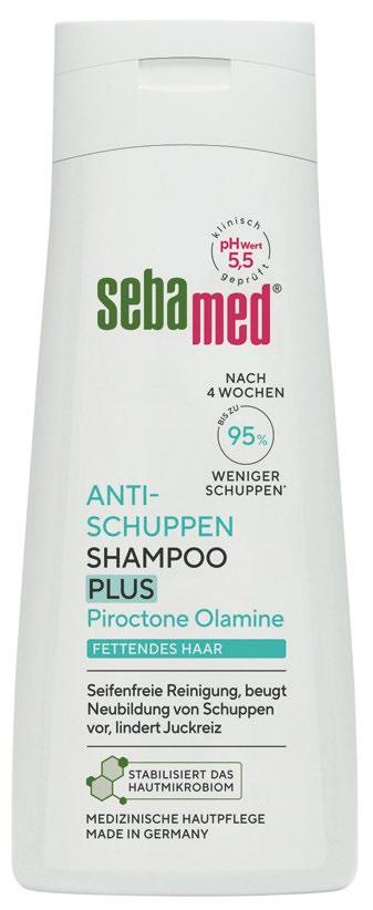 Beide Shampoos enthalten den bewährten Wirksto Piroctone Olamine, der eine der Hauptursachen fettiger Schuppen gezielt bekämpft: das übermäßige Wachstum bestimmter Mikroorganismen auf der Kopfhaut. Darüber hinaus basieren sie auf dem vertrauten Pflegekonzept von sebamed: medizinische Wirksamkeit, hautschonende, seifenfreie Formulierungen und höchste Verträglichkeit –abgestimmt auf den leicht sauren pH-Wert 5,5. Dieser entspricht dem natürlichen Milieu der Haut, unterstützt die gesunde Barrierefunktion und Mikrobiombalance der Kopfhaut und trägt so zu kräftigem Haar bei. Über 400 klinische Studien belegen die Qualität der sebamed Produkte, die konsequent in Deutschland entwickelt und hergestellt werden. Damit bietet sebamed seit über 55 Jahren zuverlässige Lösungen für empfindliche Haut – von Kopf bis Fuß.