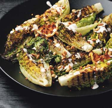 Die Salatherzen nach dem Anrösten wenden und in den indirekten Grillbereich legen. Mit Parmesan bestreuen, leicht salzen, pfeffern und bei geschlossenem Deckel circa 10 Minuten grillen, bis der Käse geschmolzen ist. Vor dem Anrichten mit cremiger Salatsauce nach Wahl beträufeln und mit Pinienkernen garnieren. Den Salat noch warm servieren.