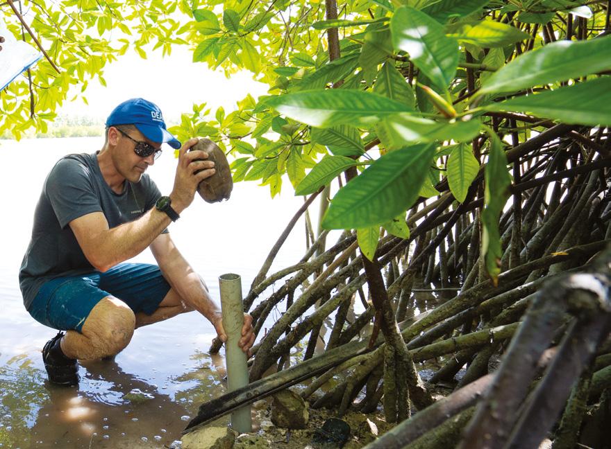 Environmental scientist Professor Peter Macreadie, head of Deakin University’s Blue Carbon Lab, says their work is rooted in both fundamental research and practical outcomes. His lab collaborates with end users, including community and industry, to ensure “realworld impact for the communities we serve, from governments and industry to everyday people — and the planet as well.