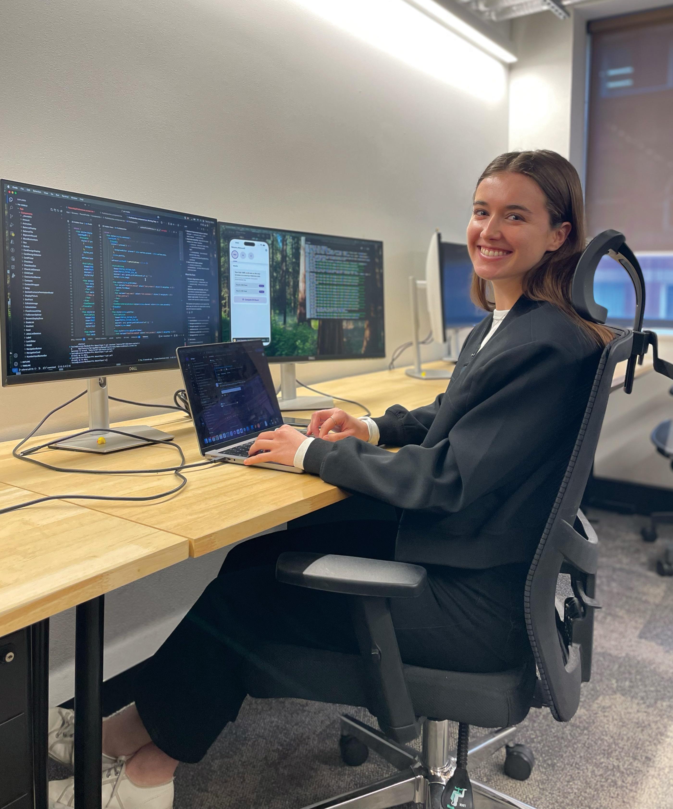 As a kid, Louise loved playing with drag-and-drop websites on the family computer. At uni, she studied app development and “went from zero-to-one in learning how to code.”