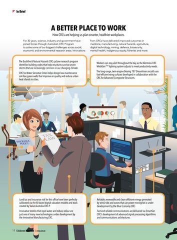 A BETTER PLACE TO WORK How CRCs are helping us plan smarter, healthier workplaces. For 30 years, science, industry and government have joined forces through Australia’s CRC Program to solve some of our biggest challenges across social, economic and environmental research areas. Innovations