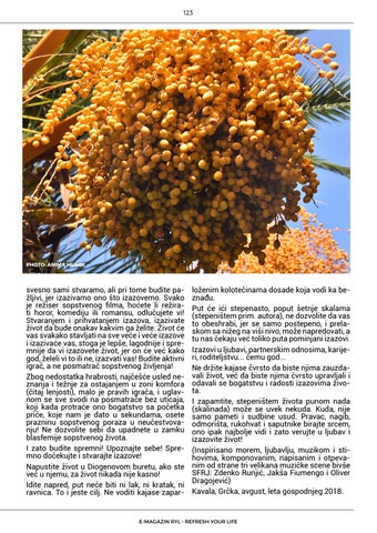 loženim kolotečinama dosade koja vodi ka beznađu. Put će ići stepenasto, poput šetnje skalama (stepeništem prim. autora), ne dozvolite da vas to obeshrabi, jer se samo postepeno, i prelaskom sa nižeg na viši nivo, može napredovati, a tu nas čekaju već toliko puta pominjani izazovi. Izazovi u ljubavi, partnerskim odnosima, karijeri, roditeljstvu... čemu god... Ne držite kajase čvrsto da biste njima zauzdavali život, već da biste njima čvrsto upravljali i odavali se bogatstvu i radosti izazovima života. I zapamtite, stepeništem života punom nada (skalinada) može se uvek nekuda. Kuda, nije samo pameti i sudbine usud. Pravac, nagib, odmorišta, rukohvat i saputnike birajte srcem, ono ipak najbolje vidi i zato verujte u ljubav i izazovite život! (Inspirisano morem, ljubavlju, muzikom i stihovima, komponovanim, napisanim i otpevanim od strane tri velikana muzičke scene bivše SFRJ: Zdenko Runjić, Jakša Fiumengo i Oliver Dragojević) Kavala, Grčka, avgust, leta gospodnjeg 2018.