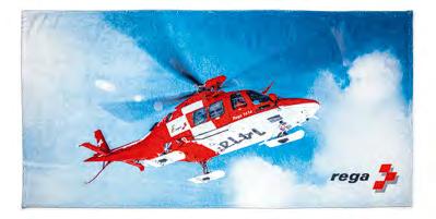 Il colorato telo mare con l’elicottero d’alta quota della Rega farà un figurone in spiaggia e in piscina.