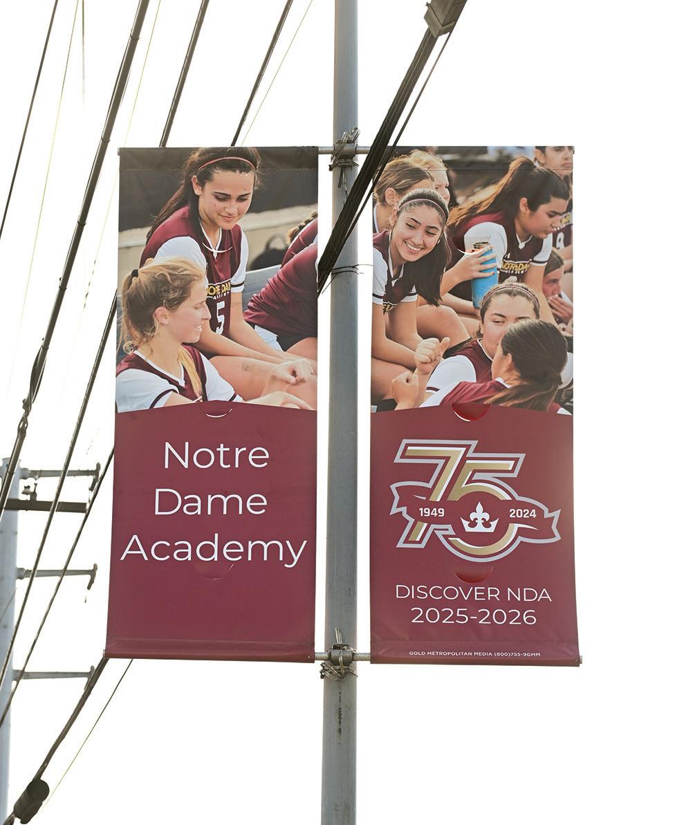 I have often said that Notre Dame Academy is both timeless and timely, especially during our 75th anniversary celebrations this past year. Timeless traditions like Notre Dame Day, the Mary’s Day Mass, and birthday locker decorations have endured, as have our values of sisterhood, service, and leadership. But NDA is also timely; we are constantly implementing ways to stay relevant in a fast-changing world, and we are enthusiastic about innovating for the future. This combination of honoring our roots and reaching for new heights has stood the test of time, with more than 6,500 alumnae now making a difference in the world.