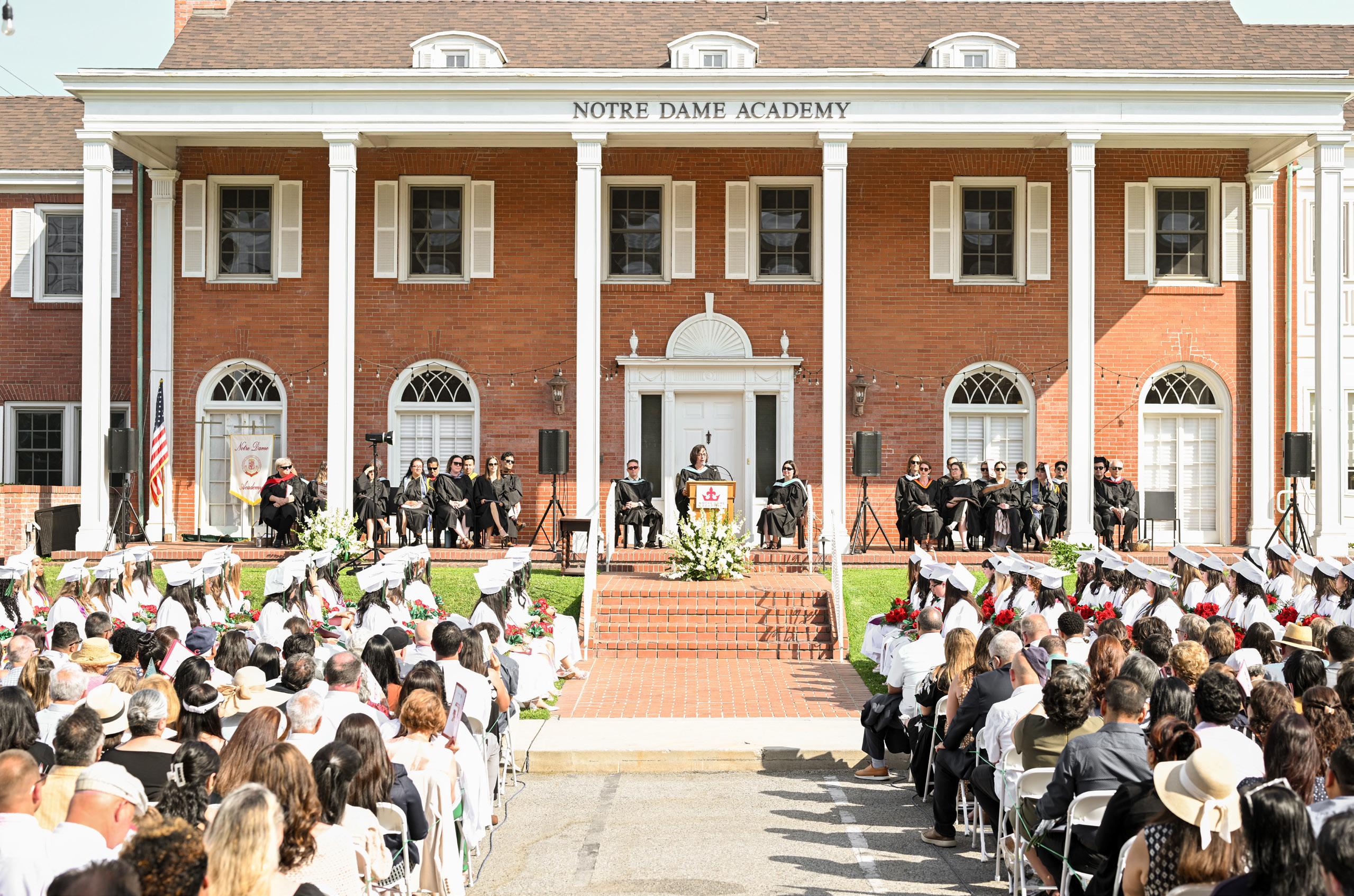 Hundreds gathered in front of Rosa Mystica Hall on May 30 to celebrate the 62 members of the Class of 2025, the 72nd class to graduate from Notre Dame Academy. Below are a few highlights from the day’s student speakers.
