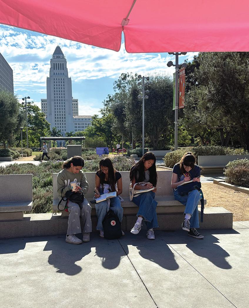 Central Library, the Biltmore Hotel, and the Last Bookshop. All the groups met up at Grand Central Market at lunchtime. While traveling, each person kept a journal that included writing and drawing prompts helping them connect their real time experiences to their own realities.