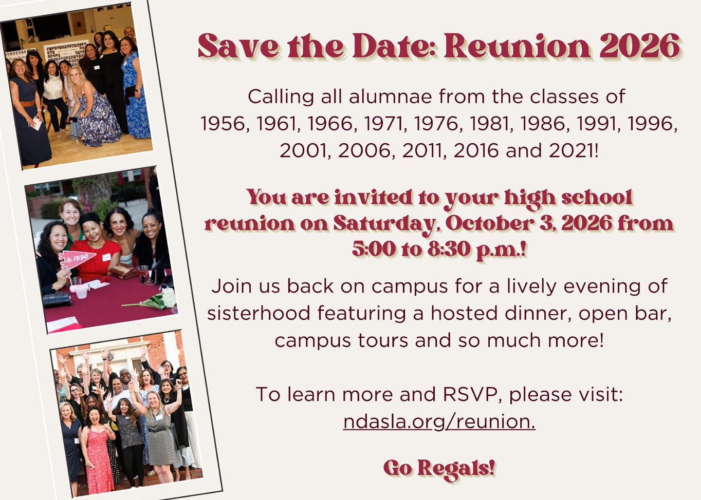 Beyond the Academy is published by Notre Dame Academy for alumnae, parents, and friends. Class Notes and In Memoriam can be submitted at https://academy. ndasla.org/alumnae/update/ class-notes or academy.ndasla. org/alumnae/prayer-requestinmemoriam or emailed to advancement@ndala.com.