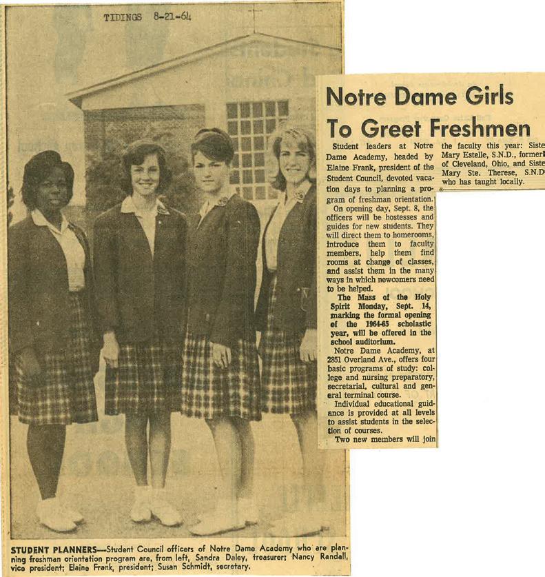 1968 Notre Dame Academy phases out home economics and business tracks to become a strictly college preparatory high school for girls.
