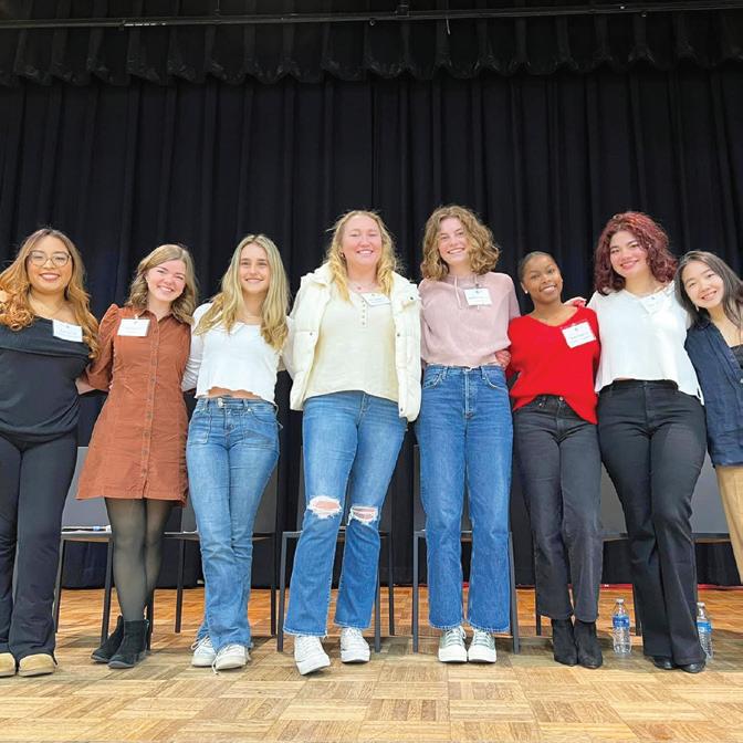 Notre Dame Academy’s alumnae engagement department hosted its first ever Regals Return: The College Panel. Kaitlin Beltran ’22, Allison Chin ’23 Olivia Guilford ’22, Francesca Khachatourians ’23, Maura McAusland ’23, Sayuri Nagai ’23, Ava Purcell ’20, Maria Ruiz ’22, and Lauren Wright ’23 returned to campus to share their insight and advice for navigating the first year of college. After a moderated panel, the seniors had the opportunity to speak with the alumnae in small group discussions while enjoying lunch.